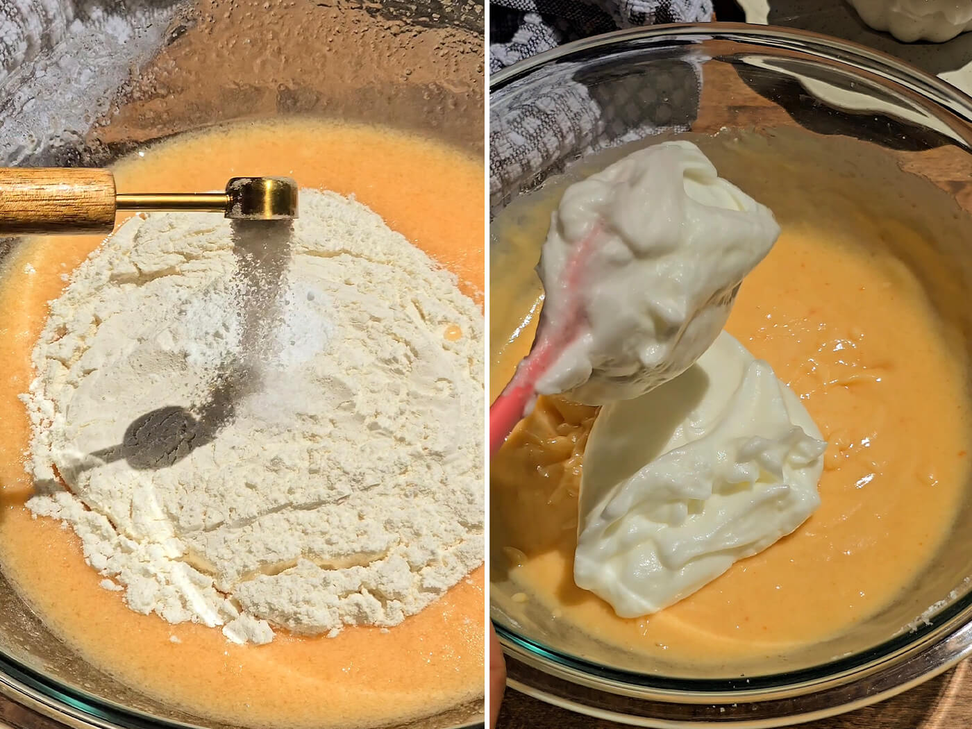 - In a medium size bowl, with a hand mixer whip the egg whites and cream of tartar until medium stiff peaks form. Gently fold the egg whites into the cake batter.